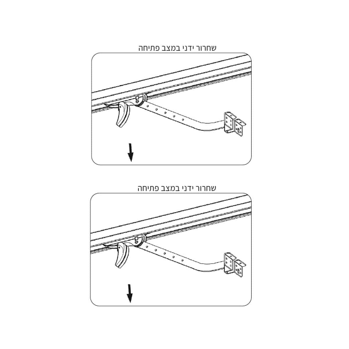 יש לגשת לחלק החיצוני של השער ולהרים אותו כלפי מעלה, לפתיחה מלאה. (רצוי שיהיה אדם נוסף לעזרה על מנת להחזיר את השער כלפי מעלה)