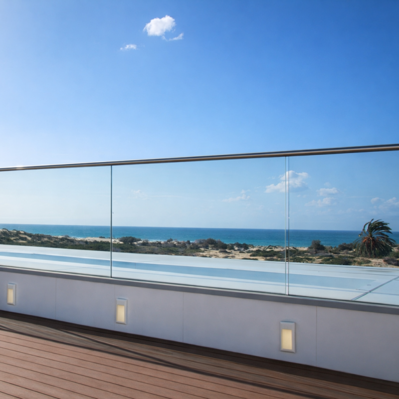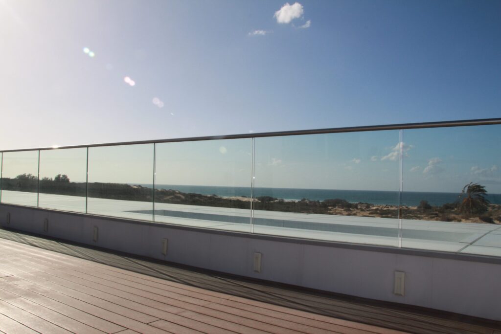 היתרון במעקה זכוכית על אלומיניום, הוא האפשרות ליהנות מהנוף הפתוח והמואר מעבר למעקה.