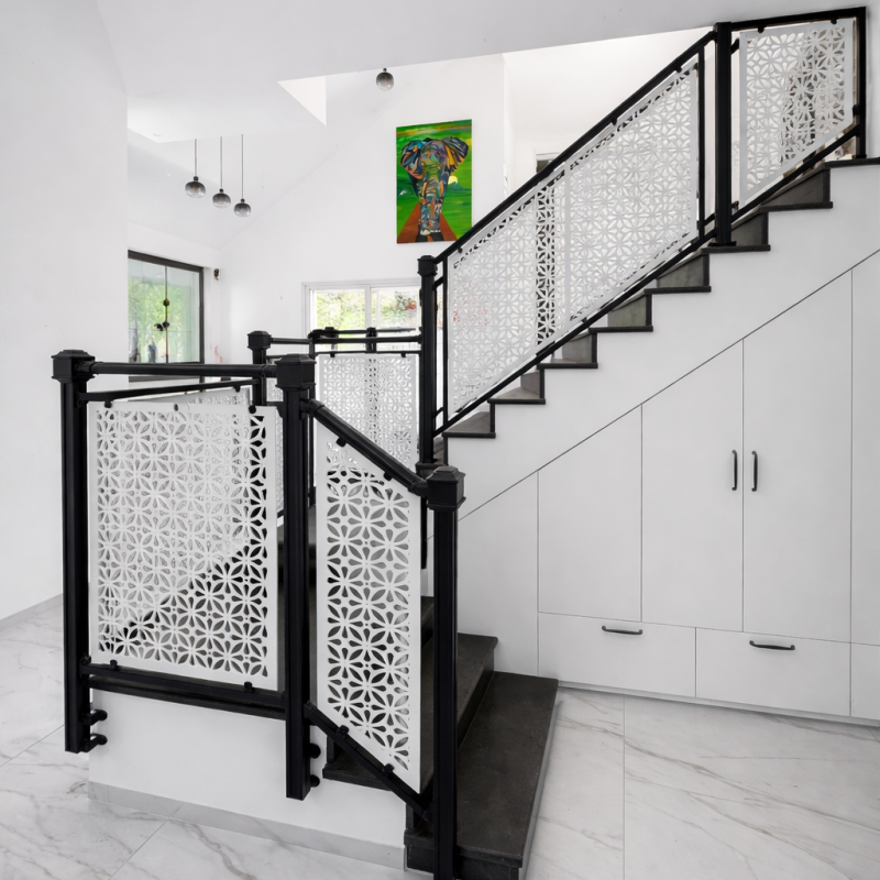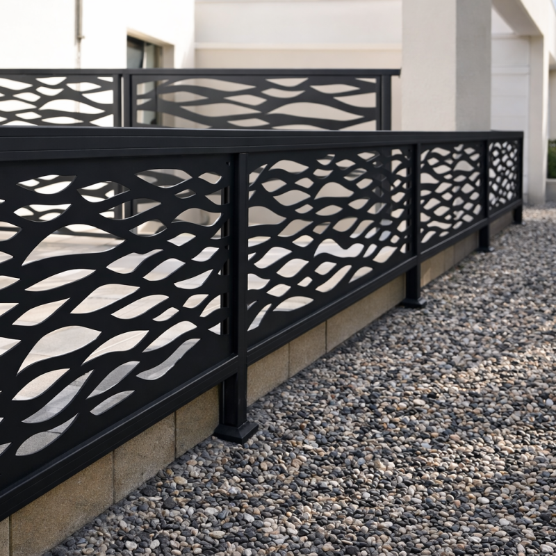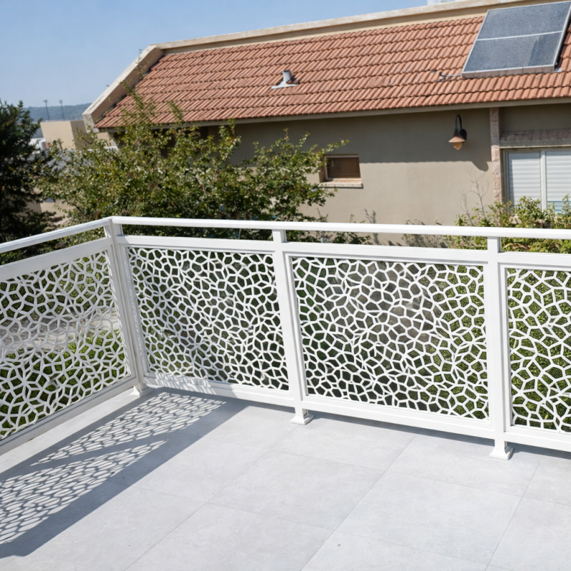 בחירה במעקה מסדרת דגמי חיתוכי לייזר מאפשרת ללקוחות שלנו גמישות עיצובית ונותנת מקום ליצירתיות וטעם אישי. לרשות חברת טרלידור עומדת טכנולוגיה מתקדמת המאפשרת תהליך עבודה מדויק שבסופו מתקבל מעקה מדרגות אלומיניום דקורטיבי, בהתאמה אישית, העומד בתקני הבטיחות המחמירים של מכון התקנים הישראלי. עיצוב ותכנון מעקה בחיתוכי לייזר מאפשר ללקוחותינו ליהנות מאסתטיקה, יופי וביטחון, במוצר אחד שילווה אותם שנים ארוכות.