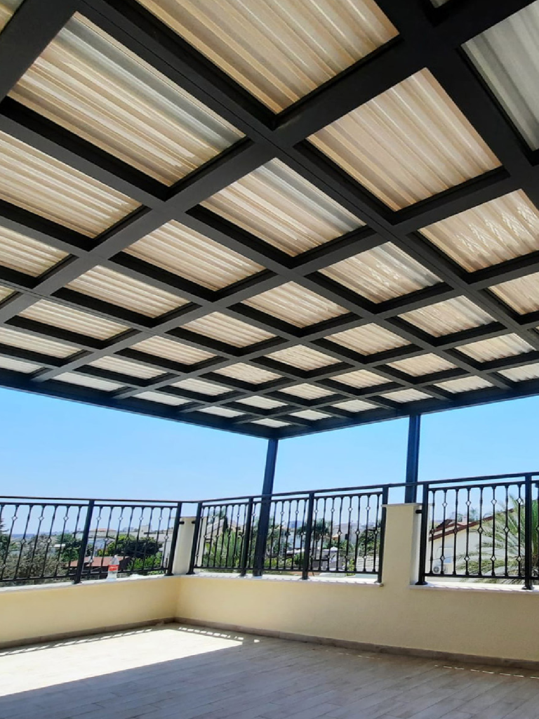 פרגולה בפנטהאוז לעיצוב יוקרתי ובטיחותי בגובה