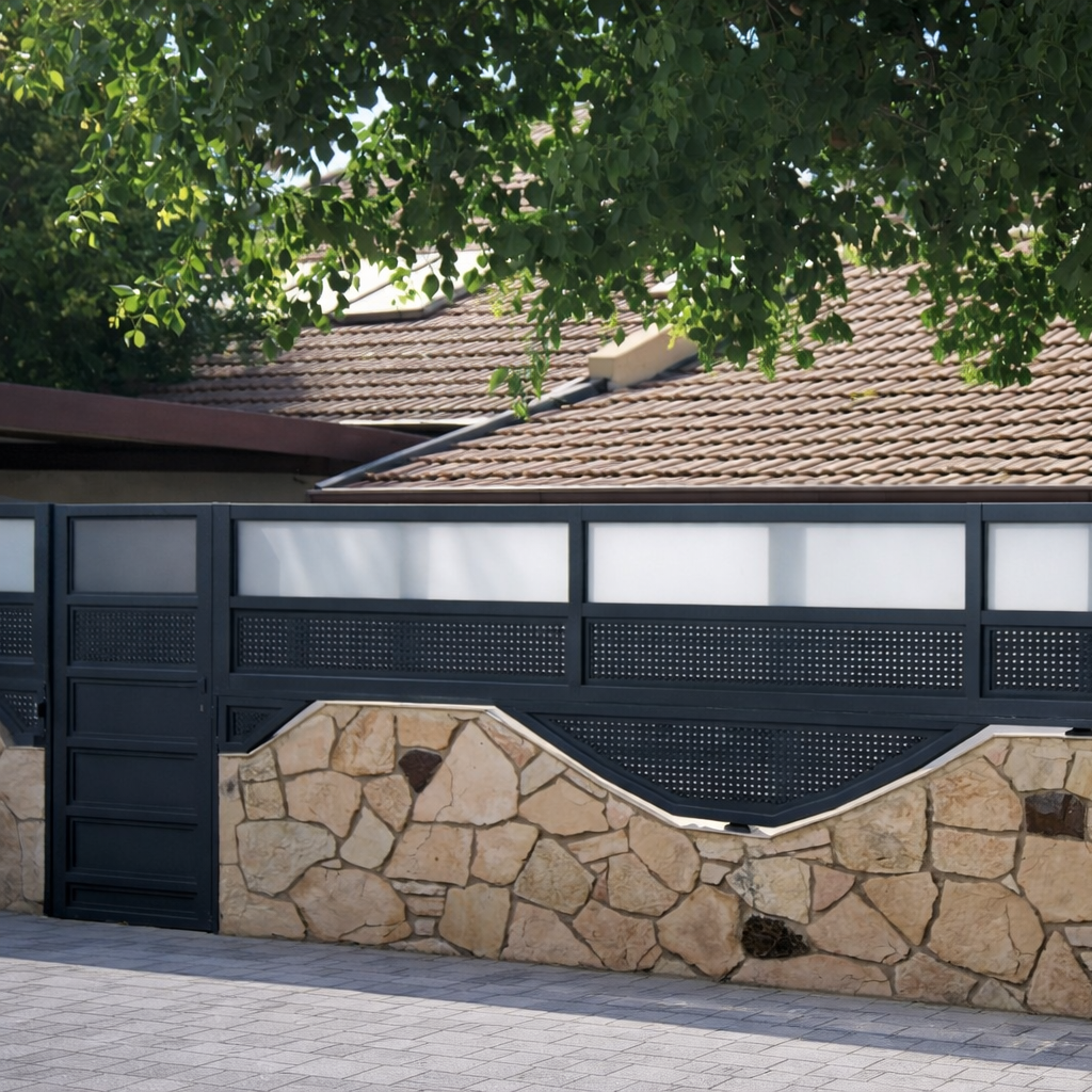 סגנון כפרי-מודרני משלב בין חמימות כפרית לניקיון עיצובי עכשווי. הוא מאופיין בקווים ישרים ופשוטים לצד שימוש בחומרים טבעיים כמו עץ, אבן וברזל, יחד עם פריטים מעוצבים מאלומיניום. שערים וגדרות מאלומיניום מהווים חלק בלתי נפרד מהסגנון, בזכות היכולת שלהם לשלב בין עמידות גבוהה לעיצוב מוקפד. הם מוסיפים טאץ' מודרני ומתוחכם תוך שמירה על הרמוניה עם חומרי הטבע שבמרחב. הצבעים הנפוצים הם גווני אדמה, לבן וגוונים ניטרליים, המשתלבים עם חללים מוארים וצמחייה, ליצירת תחושת רוגע וחיבור לטבע. הבחירה המושלמת למי שמחפש שילוב בין עיצוב עדכני לאווירה כפרית מזמינה.