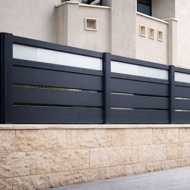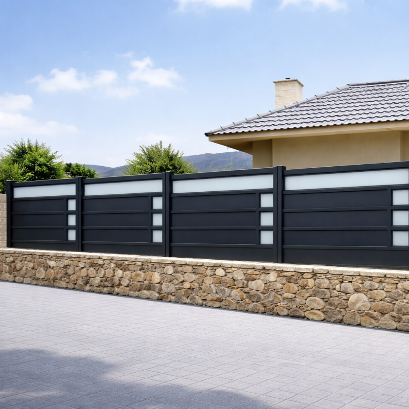 The “Glass-Integrated” fence series provides an inviting look with diverse material design options, allowing privacy and maximum protection for homes. Glass can be combined with classic profile fences and other models for a personalized touch. With Trellidor’s guidance, we can ideally meet your privacy, design, and style needs. This series offers a high-quality finish and premium materials, providing a look that conveys reliability and luxury.