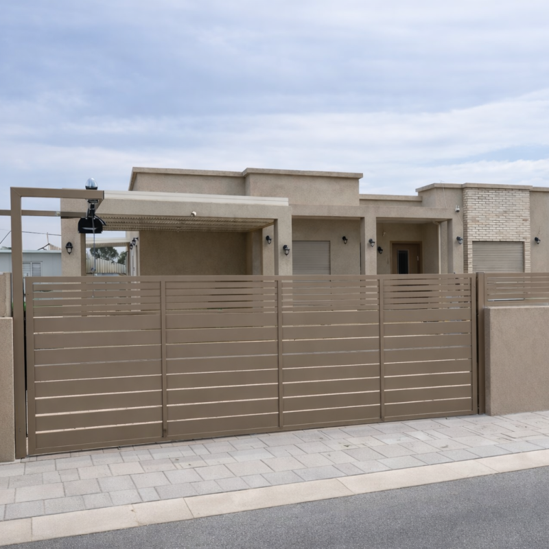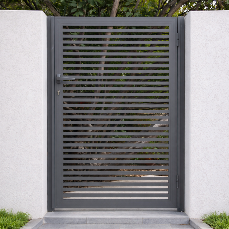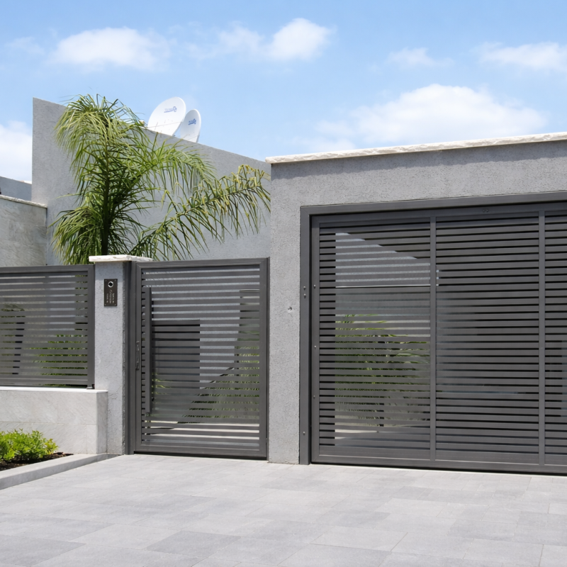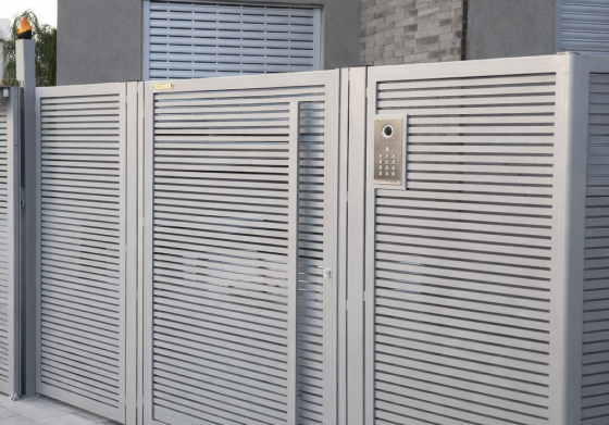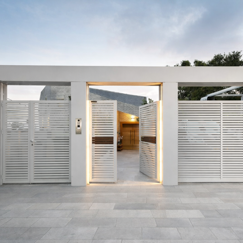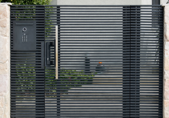 Featuring a sleek design and innovative manufacturing technology, Trellidor provides a functional entrance gate that effortlessly blends into the front design of your home. The “Profile” model allows you to strategically position profiles with varying density, offering privacy at key locations while maintaining ventilation and openings where necessary— all without compromising on the safety and security of your home.