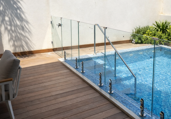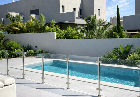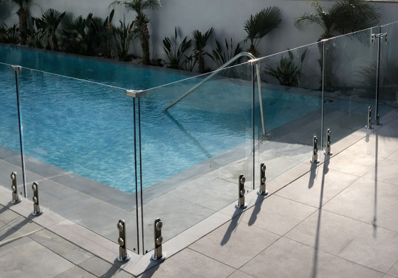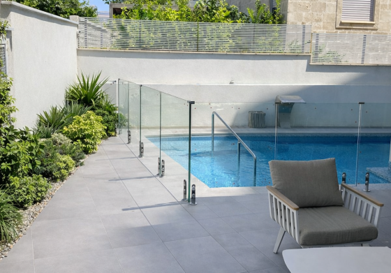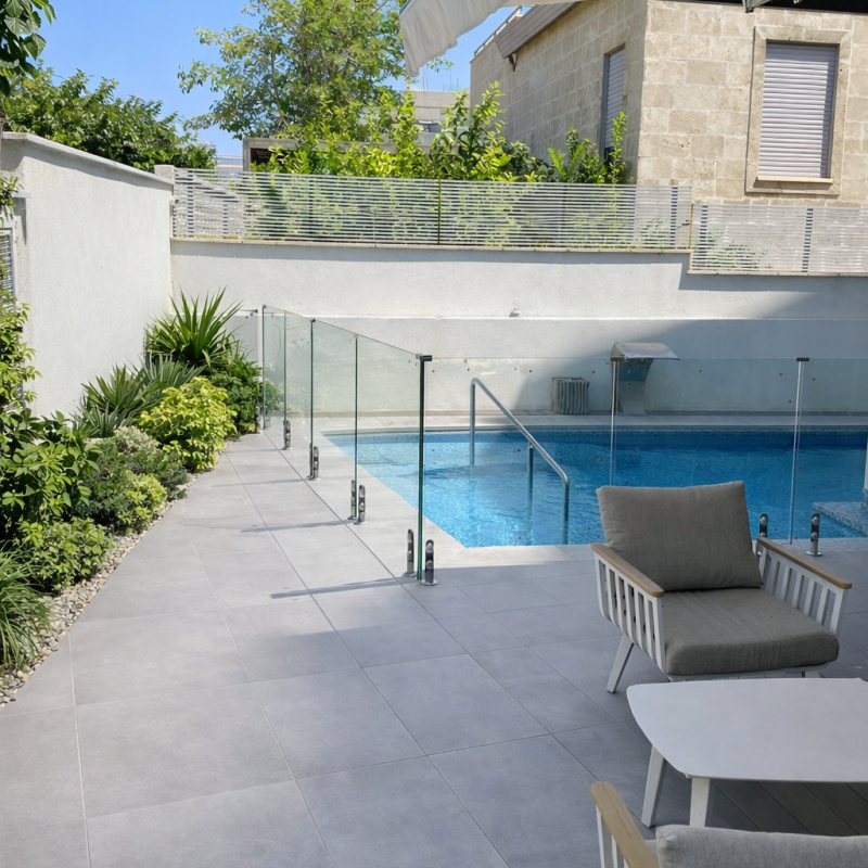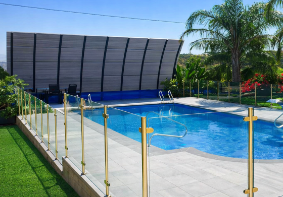 מעקות הבריכה ניתנים לייצור גם בזכוכית וגם באלומיניום.
